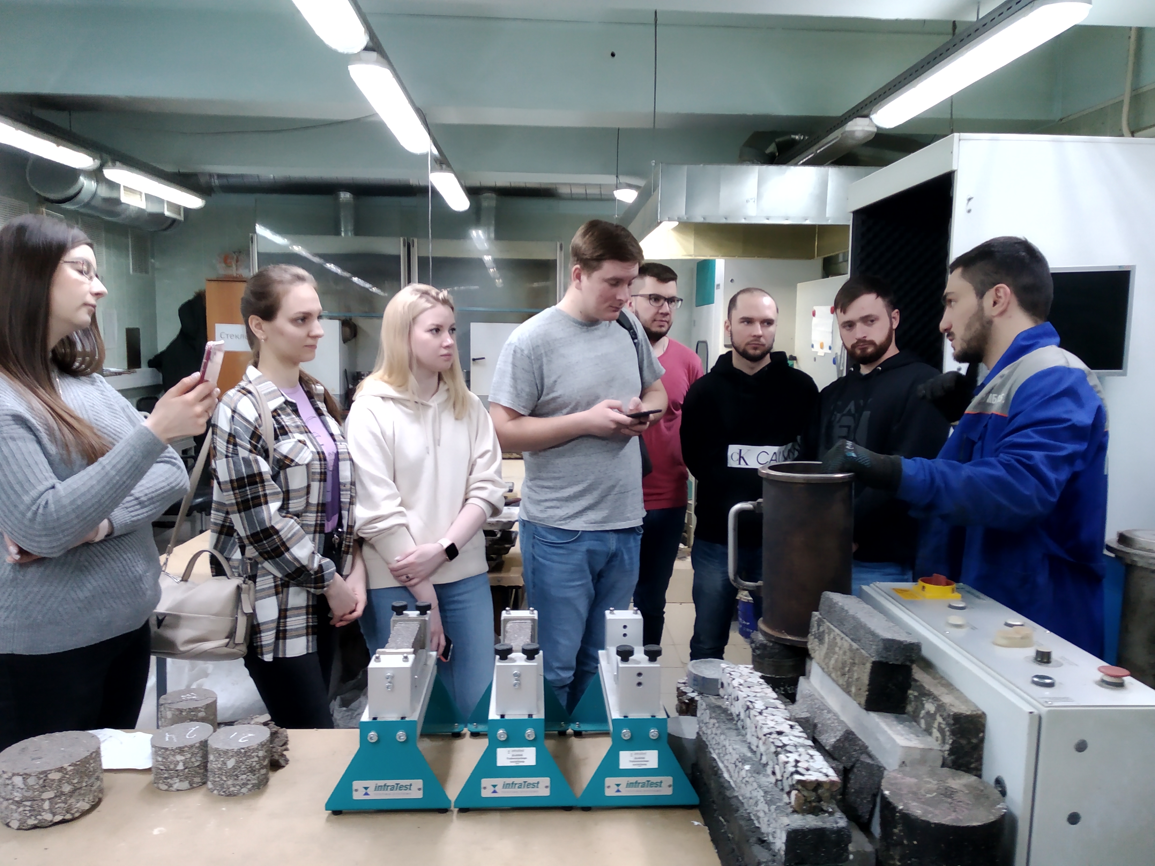 Во время обучения прошли практические занятия в испытательной лаборатории МАДИ (Московский автомобильно-дорожный государственный технический Университет) с последующим разбором результатов испытаний.