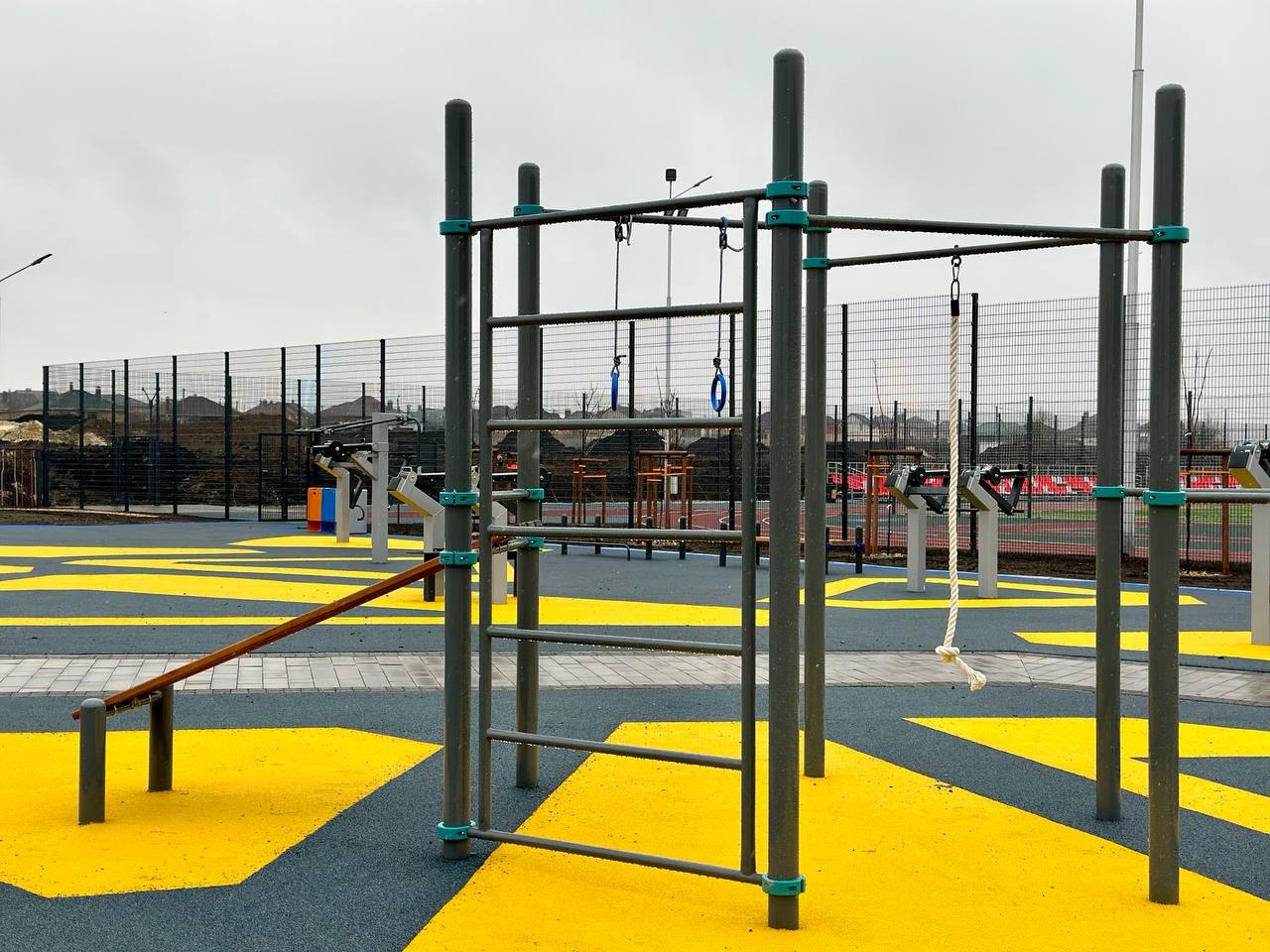 Помимо нескольких зелёных зон, спортивных и игровых площадок, для школьников построили большой стадион, на котором можно одновременно проводить занятия по разным видам спорта, и оборудовали автогородок для изучения правил дорожного движения.