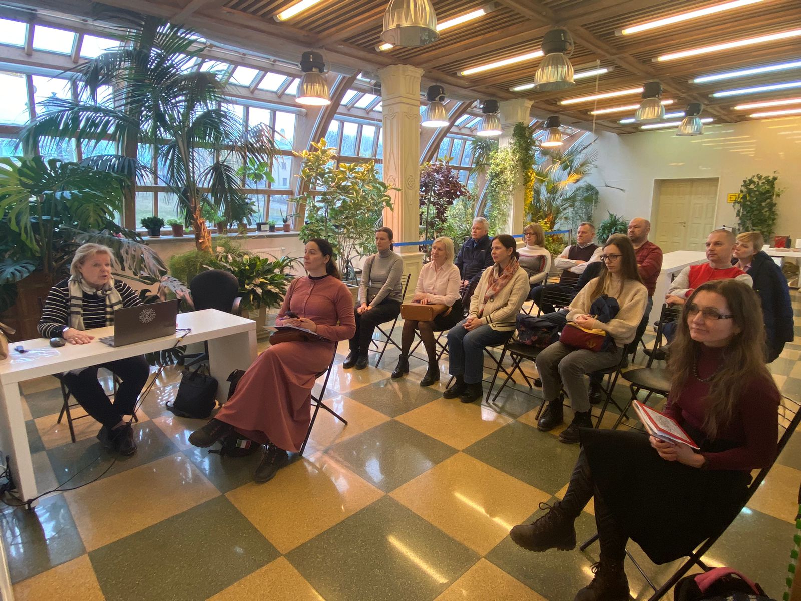 Занятия в Виноградной оранжерее провела Маркина Ирина Александровна, аттестованный эксперт по проведению государственной историко-культурной экспертизы, бессменный куратор ежегодного фестиваля «Архитектурное наследие», отдавшая музею-заповеднику много лет. Сотрудники «Царицыно» ознакомили слушателей с историей и особенностями реставрации усадьбы, проведя экскурсию с осмотром парка, Большого дворца, Хлебного дома, оранжерей (сохранивших свое первоначальное назначение).