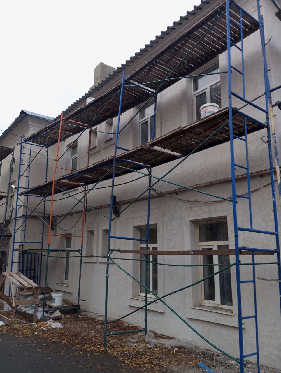 Строители осуществляют восстановление кровли, окон здания, окон, дверей, отделки и электрики МОП. В данный момент готовность объекта составляет 82%.