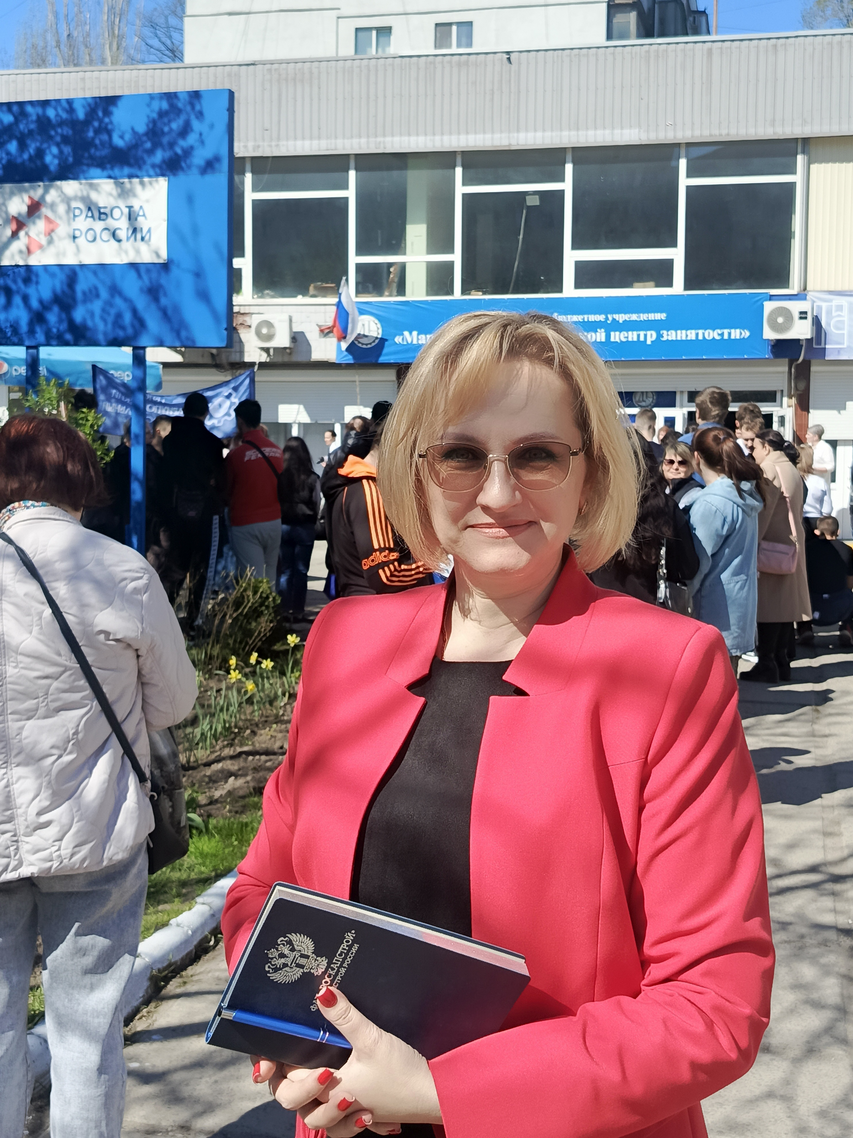 В рамках проведения Всероссийской ярмарки трудоустройства 2025 «Работа России. Время возможностей» руководитель учебного центра ОП «Дирекция в городе Мариуполе» ФАУ «РосКапСтрой» Светлана Твердохлеб и ее заместитель посетили ГБУ «Мариупольский городской центр занятости».