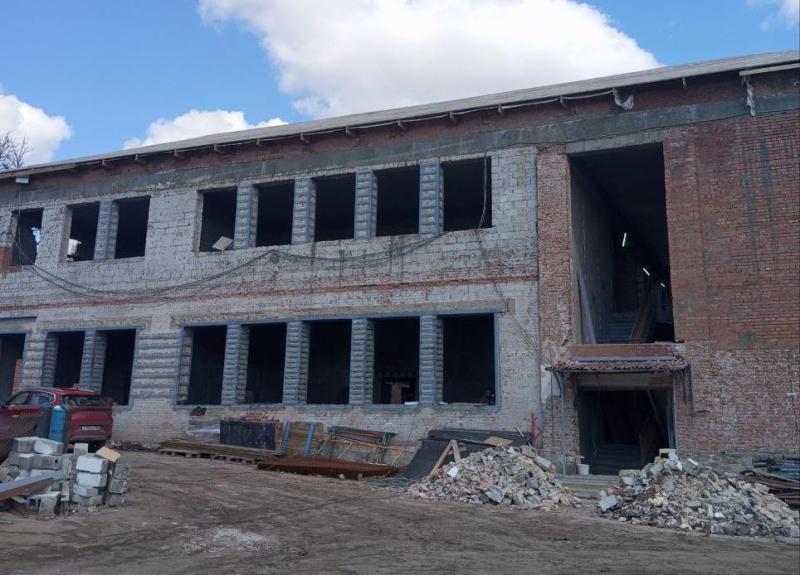 Строители осуществляют благоустройство территории, восстановление конструктива, кровли, фасада, окон и дверей здания, ремонт внутренних помещений с заменой инженерных сетей. В данный момент готовность объекта составляет 30%.