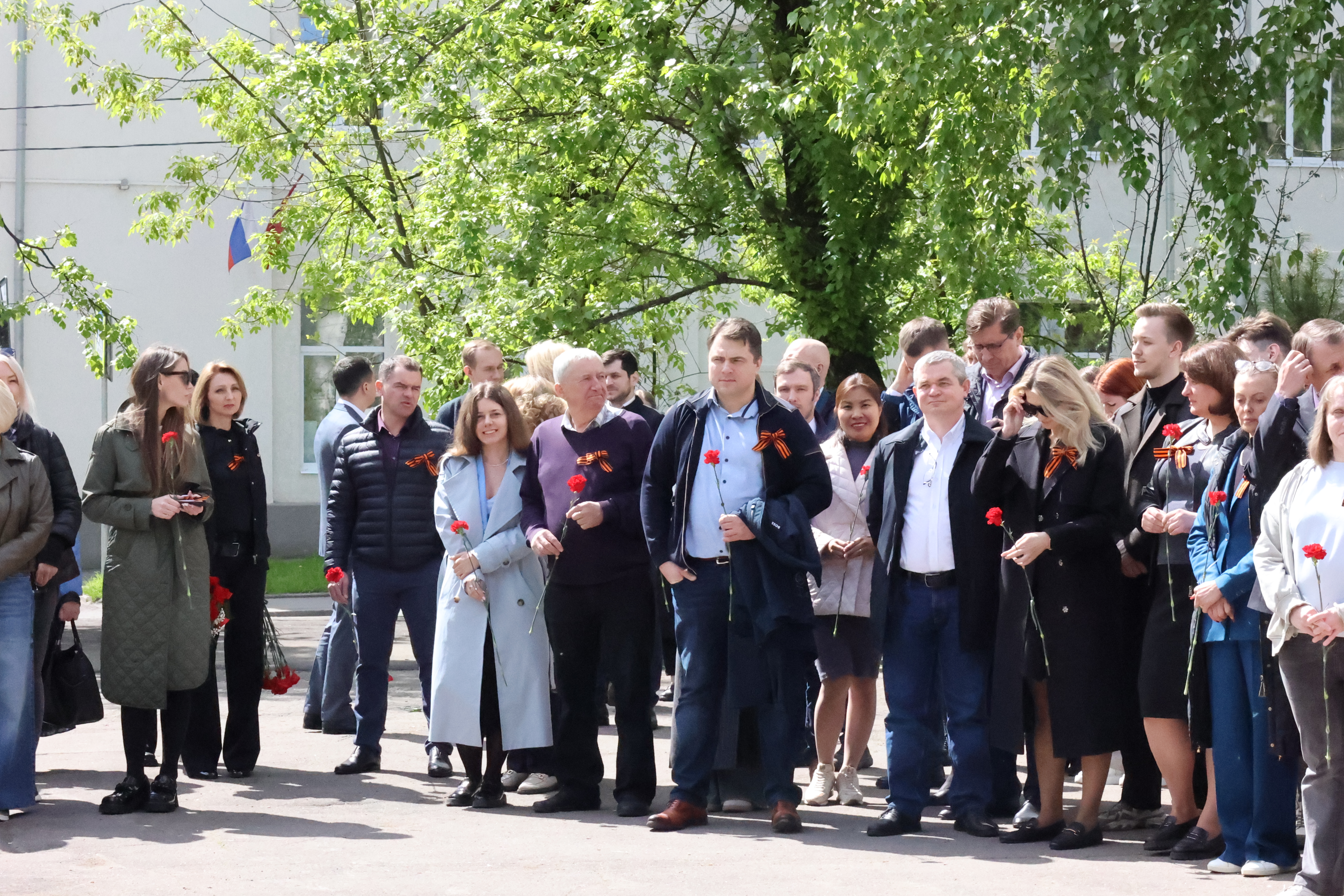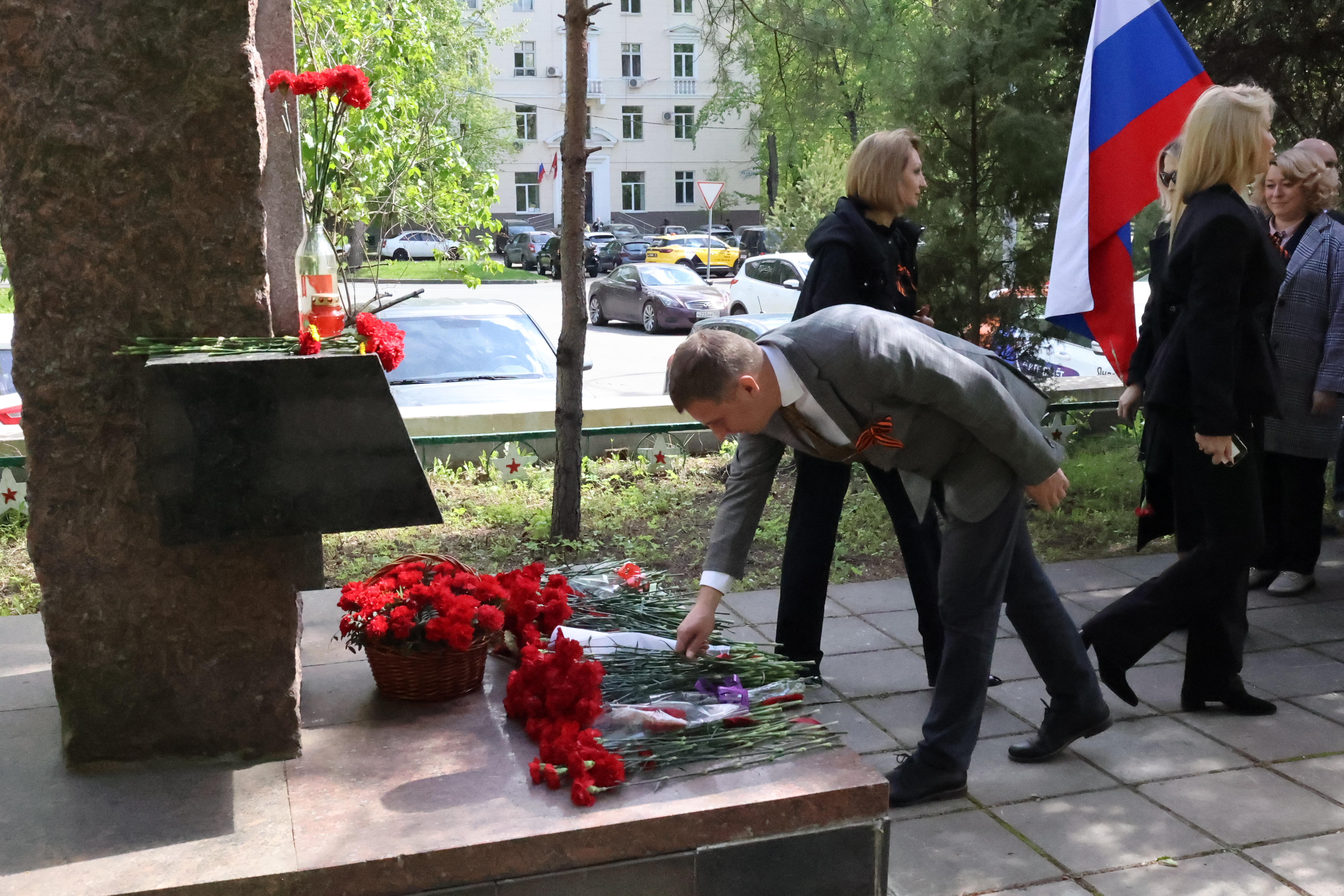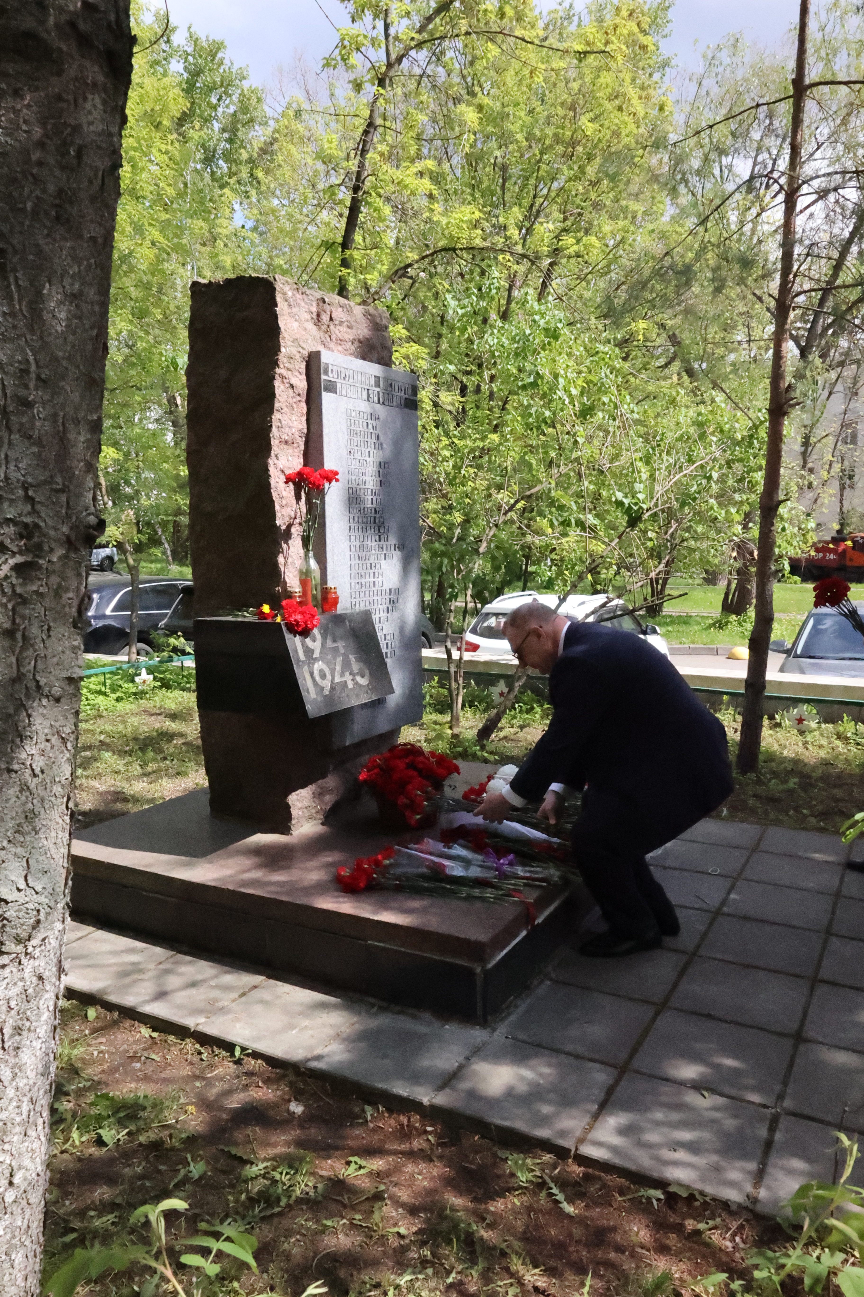Затем сотрудники во главе с руководством учреждения возложили цветы на Стелу Сотрудникам Научно-исследовательского института транспортного строительства (ЦНИИС), погибшим в Великой Отечественной войне.